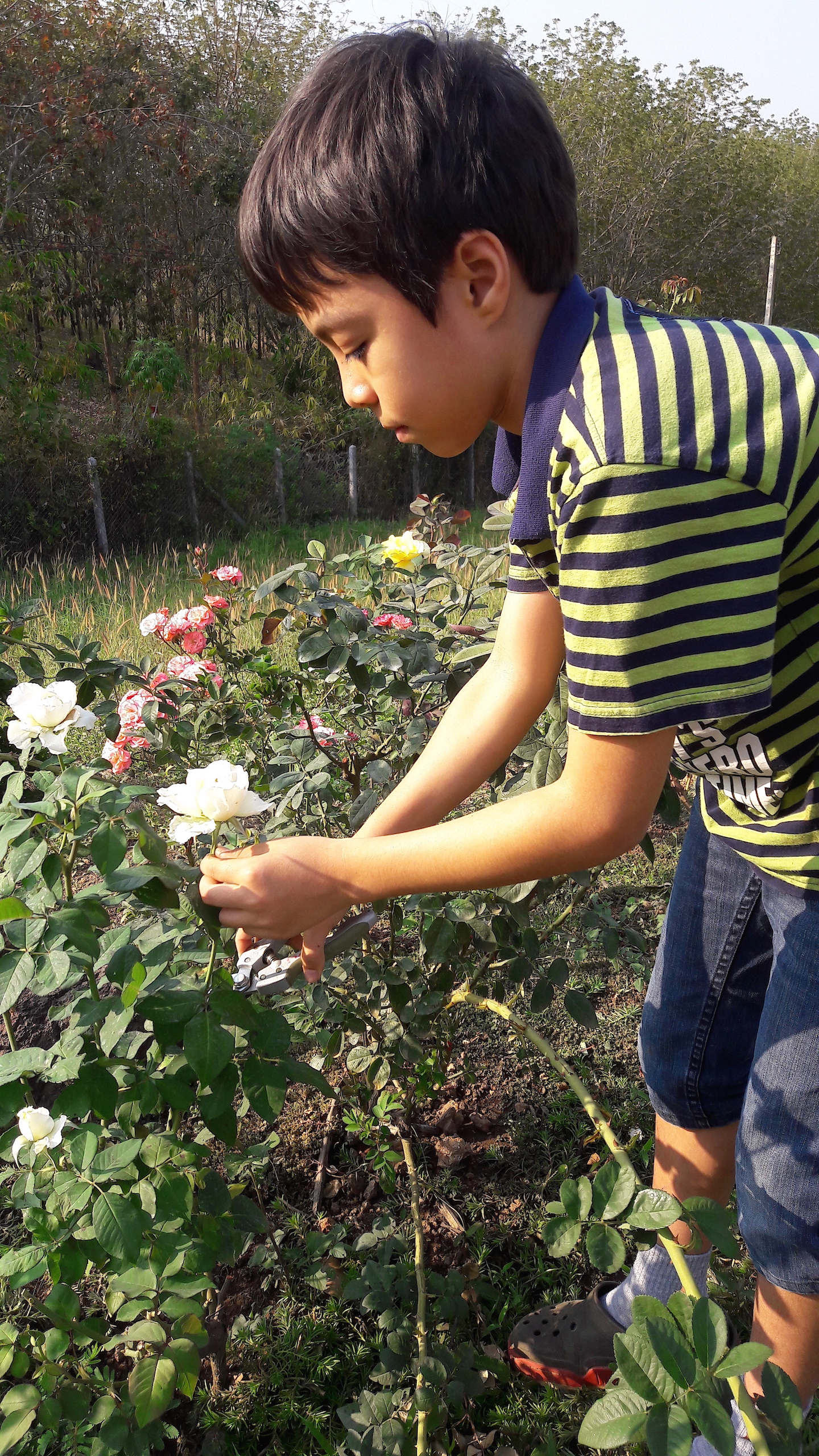 2 white cut roses (I got the rose from my mother’s garden),